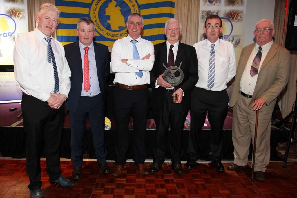 ALL SERVED AS CHAIRMEN OF NEWPORT GAA CLUB:- Enjoying the Tipperary Association Dublin Annual Awards Function (from left) Timmy Floyd, Martin Kennedy, James Collins (present Chairman), Denis Floyd (Tipperary Person of the Year Award recipient), Martin Guilfoyle and Michael Collins. (Feb 2018)