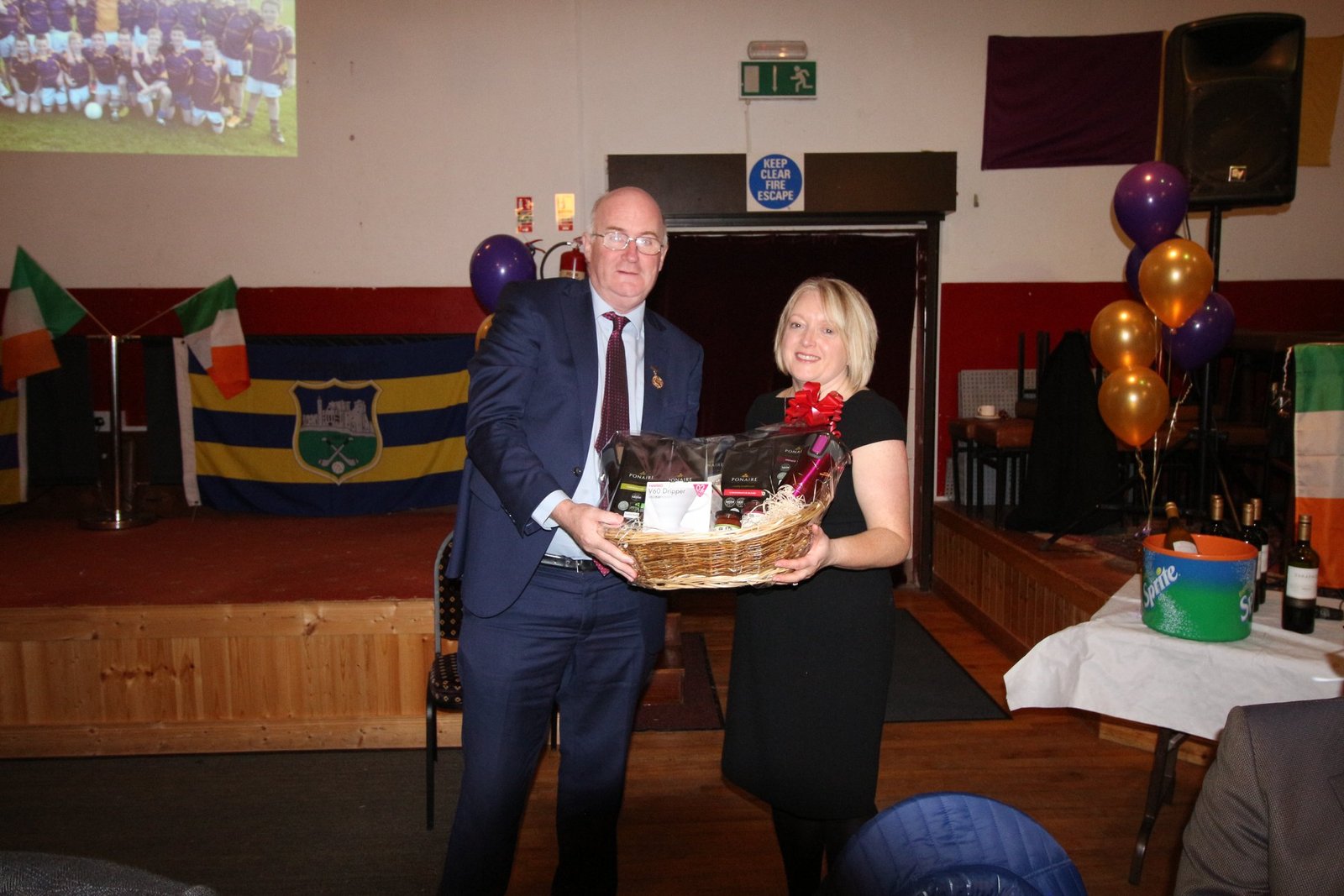Majella Coffey (Club Sec) makes a presentation to President John Horan at the the History Launch