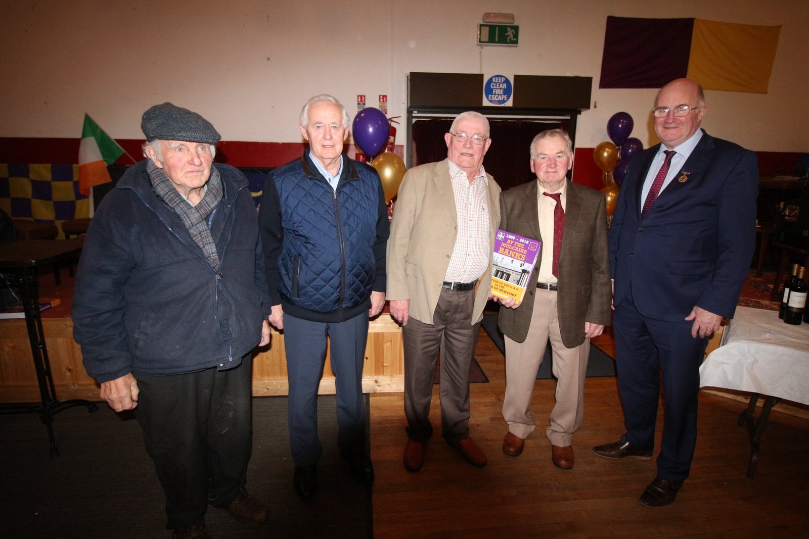 James Collins (Chairman Newport GAA), John Devane (Chairman Co Board), John Horan (GAA President), Denis Floyd (History Author), Michael Collins (History Author).