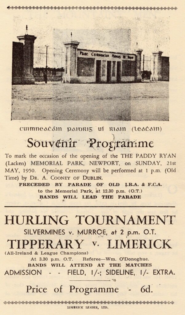 Programme for Lacken Park Opening 1950